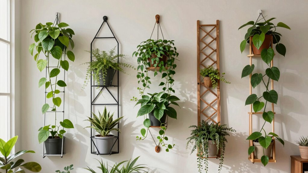 Think of these trellis options as gentle giants for your delicate plants. I’ve found that many kits feature lightweight, adjustable designs with fine mesh or thin rods, perfect for small or fragile plants. They give your plants room to breathe and grow without overwhelming them. With a bit of care, these trellises support your tiny climbers beautifully, ensuring they flourish safely and stylishly indoors.
