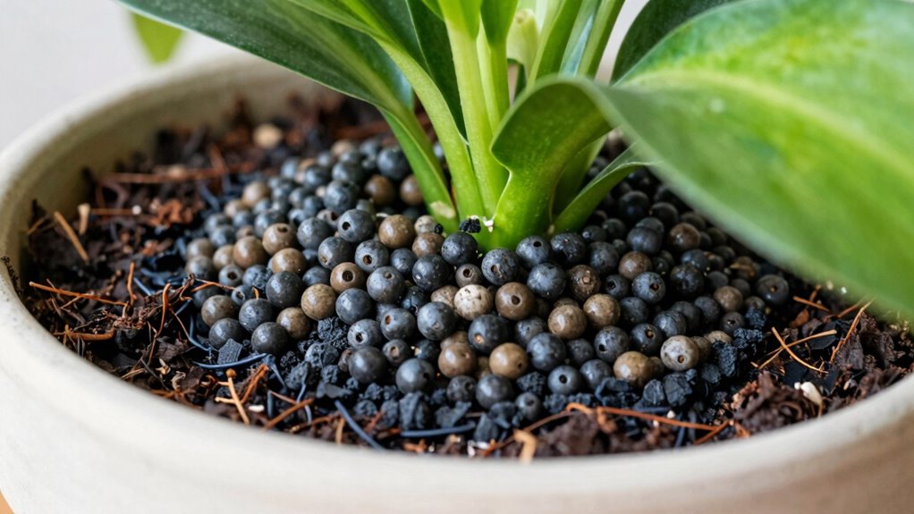 Choosing the right drainage additive depends heavily on your soil type, as different soils have varying water retention and aeration needs. Sandy soils drain quickly but may need additives like perlite or pumice to retain some moisture and improve structure. Loamy soils generally work well with organic additives or well-draining materials, while clay soils benefit from porous options like expanded clay or lava rocks to prevent compaction. For fine soils, such as seed-starting mixes, lightweight additives like vermiculite or fine perlite help avoid waterlogging and promote healthy root growth. It’s also important to evaluate the pH of the additive; some, like horticultural charcoal, suit various pH levels, ensuring compatibility with your plant’s specific needs. Matching soil and additive ensures ideal drainage and healthy indoor plants.