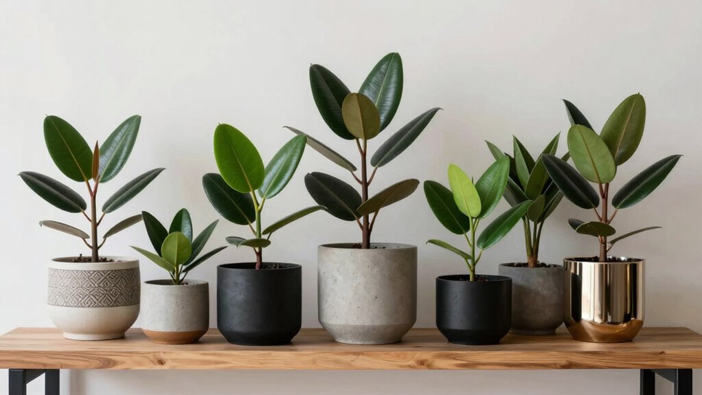 Choosing the right planter can truly elevate your rubber plant’s health and style. Did you know that proper drainage reduces overwatering issues by 60%? Whether you prefer sleek concrete, sturdy fiberstone, or versatile resin, there’s a perfect option for every space. Investing in quality planters not only boosts your plant’s growth but also adds to your outdoor decor. So, pick wisely—your rubber plant deserves the best to thrive!