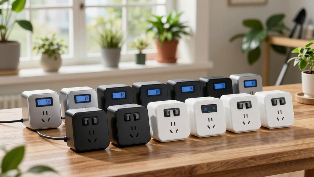 Absolutely, there are timer outlets specifically designed for high-humidity indoor environments. I’ve found these outlets to be incredibly resilient, like having a waterproof suit for your plants’ electronic needs. They’re built to withstand moisture, preventing corrosion and short circuits. If you’re serious about indoor gardening, investing in these specialized timers guarantees your plants get consistent light cycles without risking electrical issues, making your green thumb efforts even more foolproof.